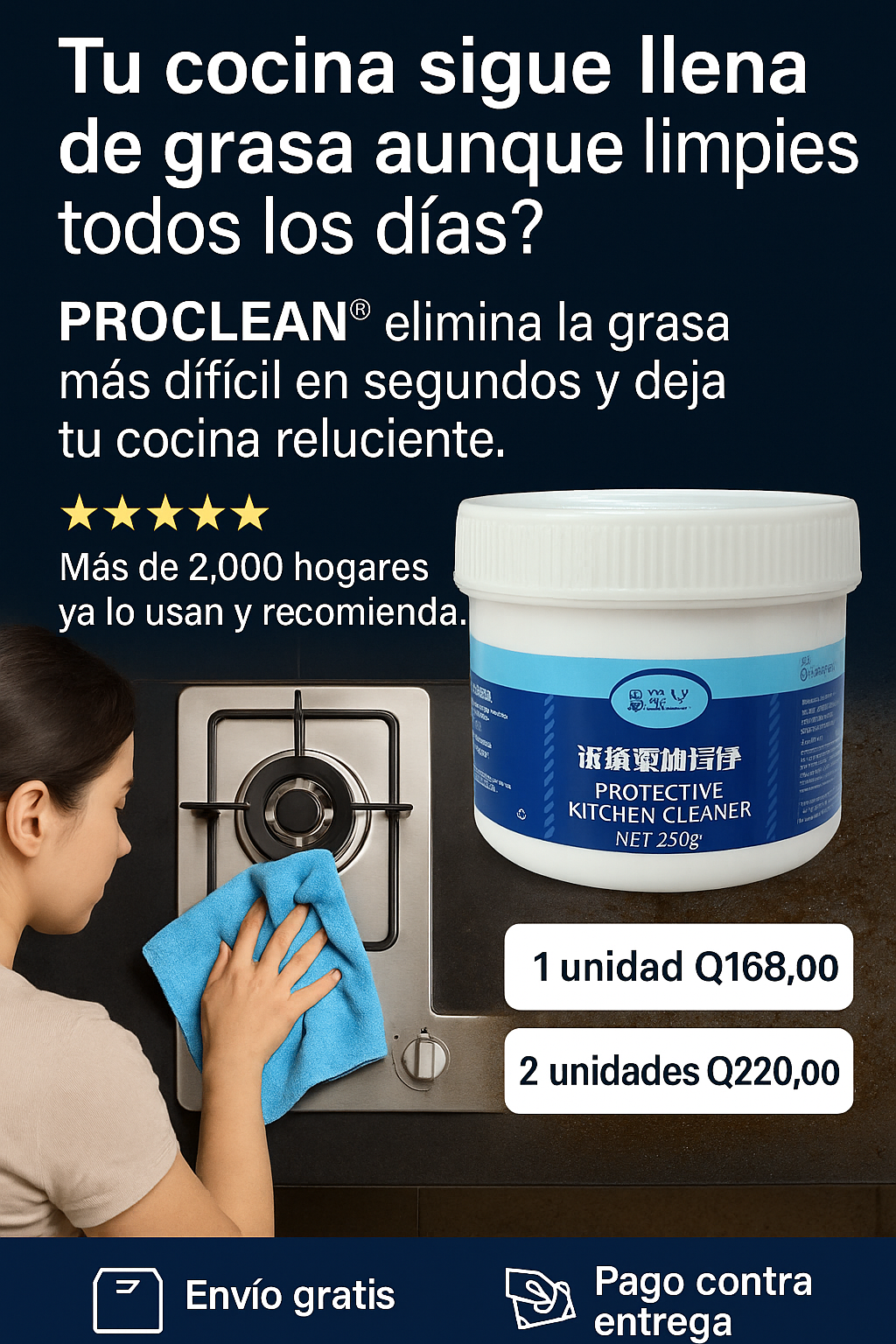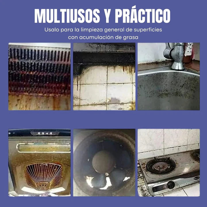 2️⃣ Asegúrate de cubrir completamente la zona afectada por la grasa o la suciedad y deja que actúe mínimo 5 minutos.